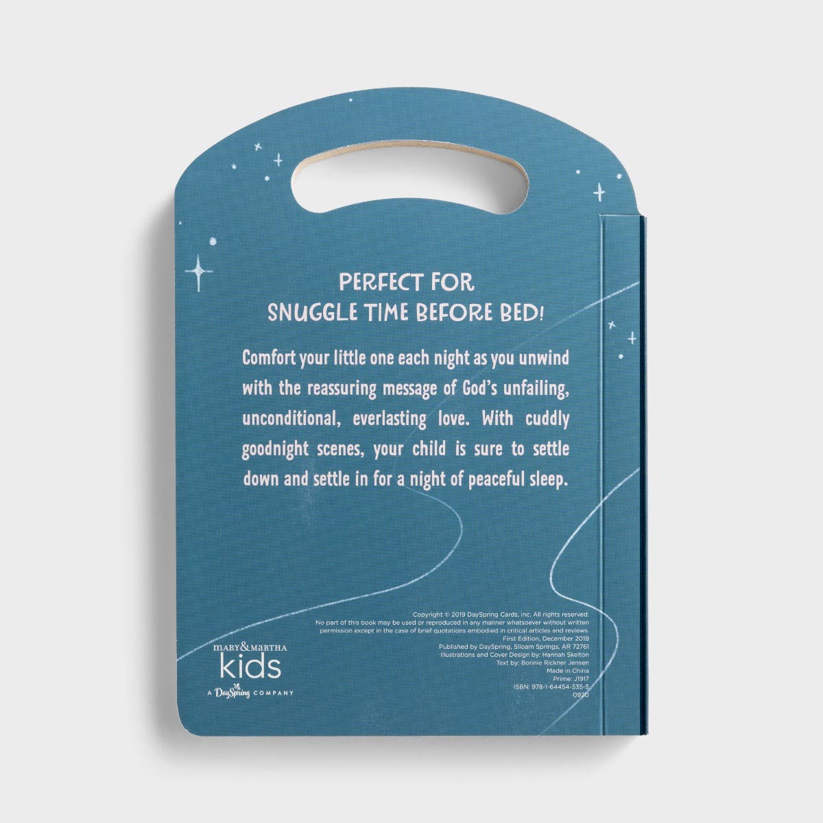 Comfort little ones with a reassuring message of God's unfailing, unconditional, everlasting love as they settle down to sleep. This Tuck-Me-In book features a built-in handle that is easy for small hands to carry and is perfect for sharing a faith-building experience with young children ages 3 to 5 at bedtime. A thoughtful gift for birthdays, baby showers, baby dedications, and more!