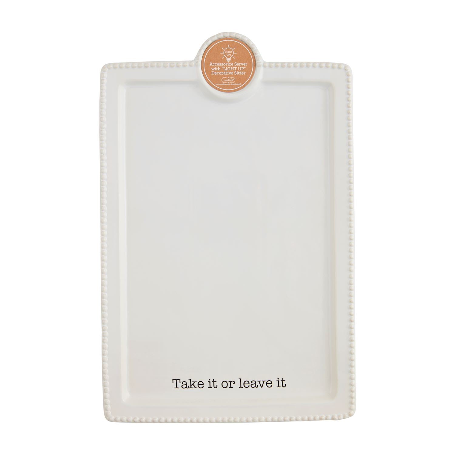 Ceramic serving platter with beaded edge features raised platform to hold light-up decorative sitters.