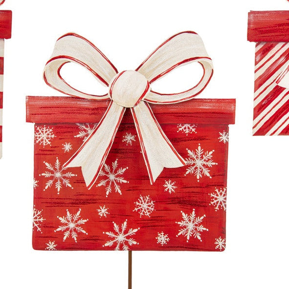 Spread joy this holiday season with this lovely present metal art piece. The red & white present would be a great gift to someone special or as a sweet gift to yourself! The Round Top Collection offers beautiful art that lasts throughout seasons. Radiate holiday joy by adding this incredible art to your front porch, landscape, or interior design! Care & Use: To extend the life of your purchase apply a clear matte protective coating at the start of each season, before exposing the product to outdoor elements. We recommend using Krylon UV-Resistant Acrylic Coating, which can be found at your local craft store or home improvement store.
