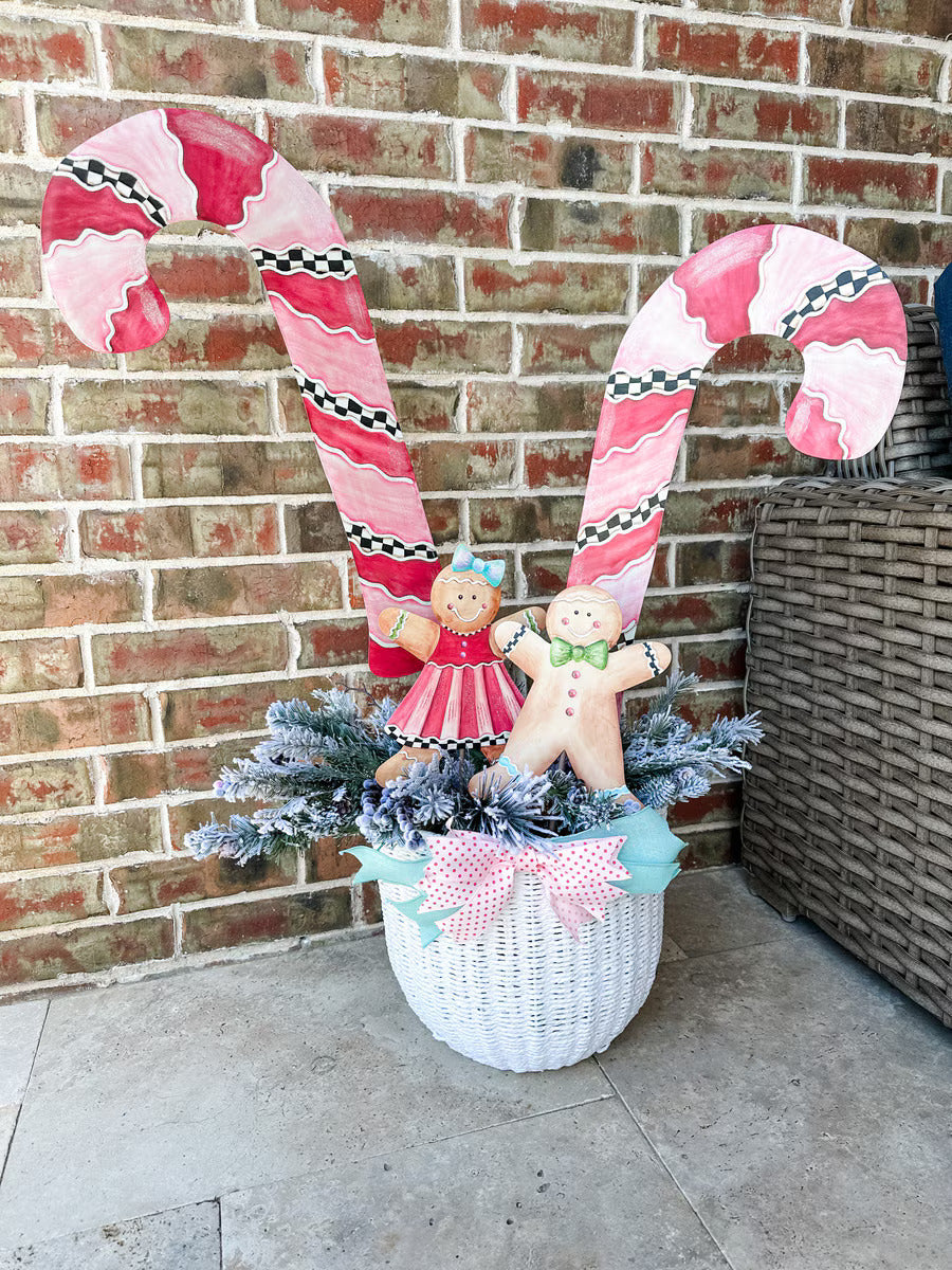 Spread joy this holiday season with this lovely gingerbread candy cane metal art piece. The Gingerbread Candy Cane would be a great gift to someone special or as a sweet gift to yourself! We offer beautiful art that lasts throughout seasons. Radiate holiday joy by adding this incredible art to your front porch, landscape, or interior design! Sold Individually.