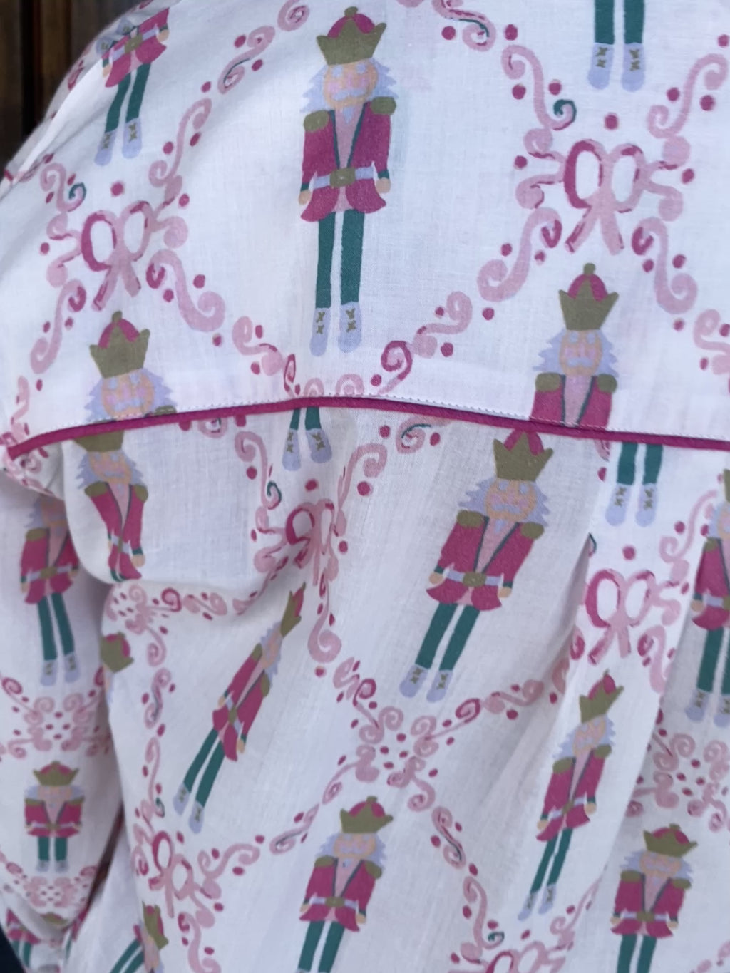 Vintage-inspired nutcrackers dance across a winter white background with pops of pink and mint — a festive nod to the magic of the season.Relaxed Fit for Lounging