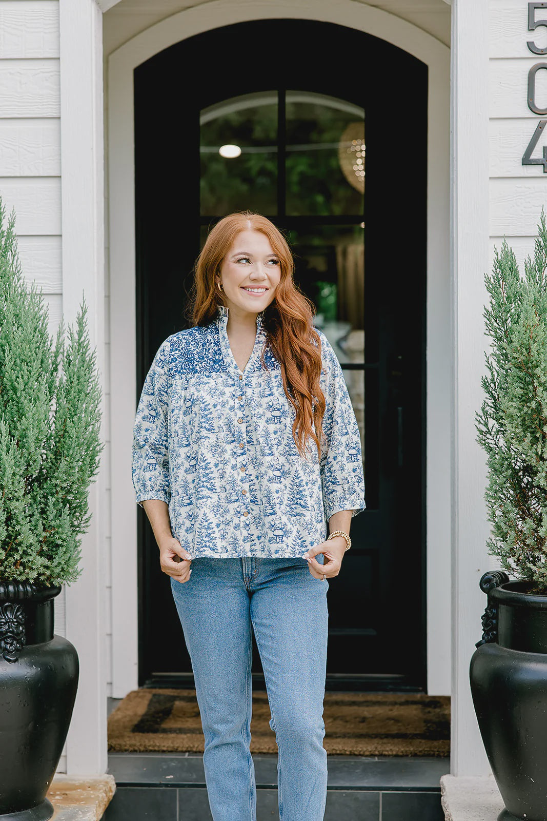 Striped Michael Top	Striped Michael top – colorful stripe button down blouse with collared neckline and long sleeves