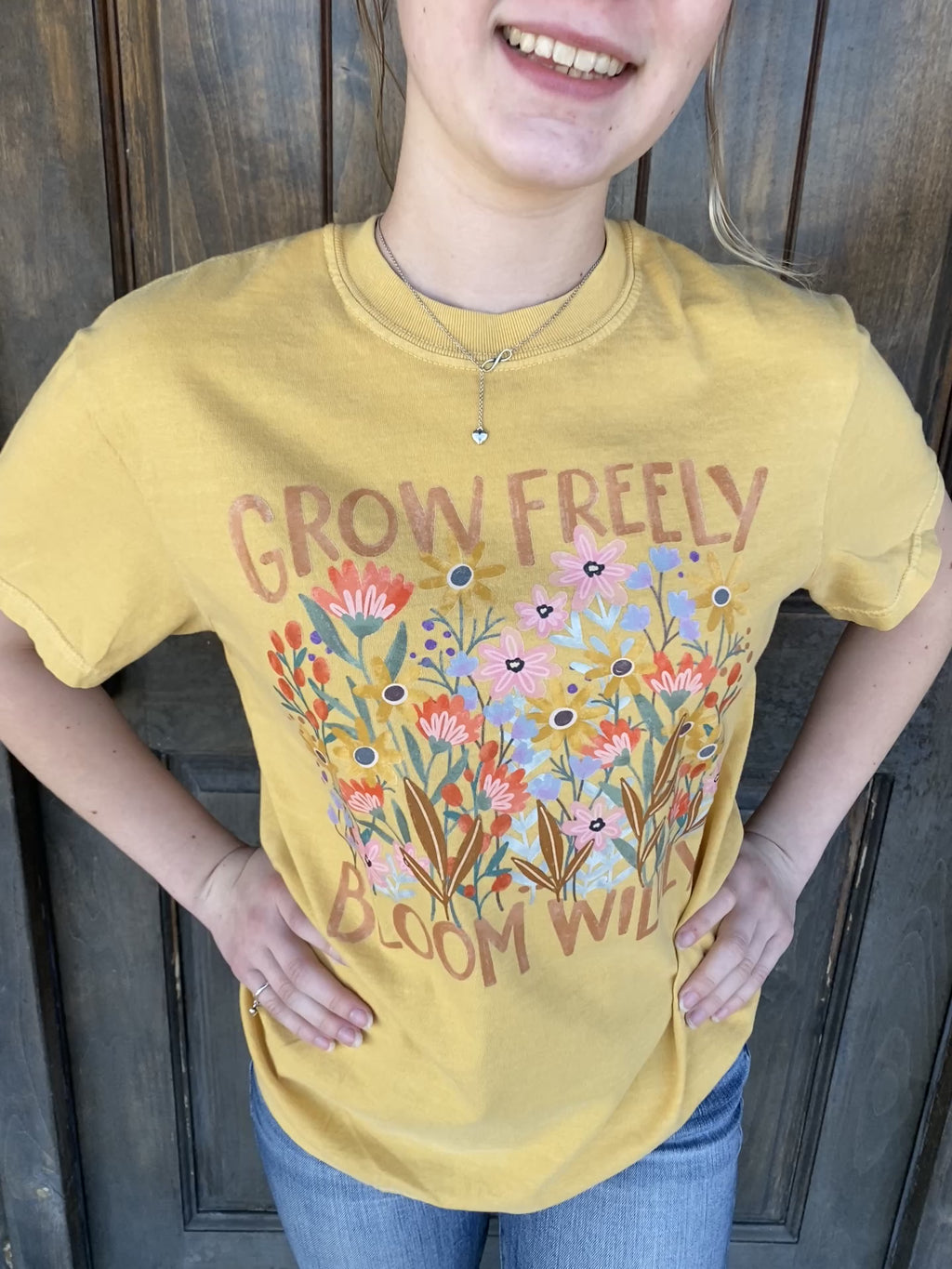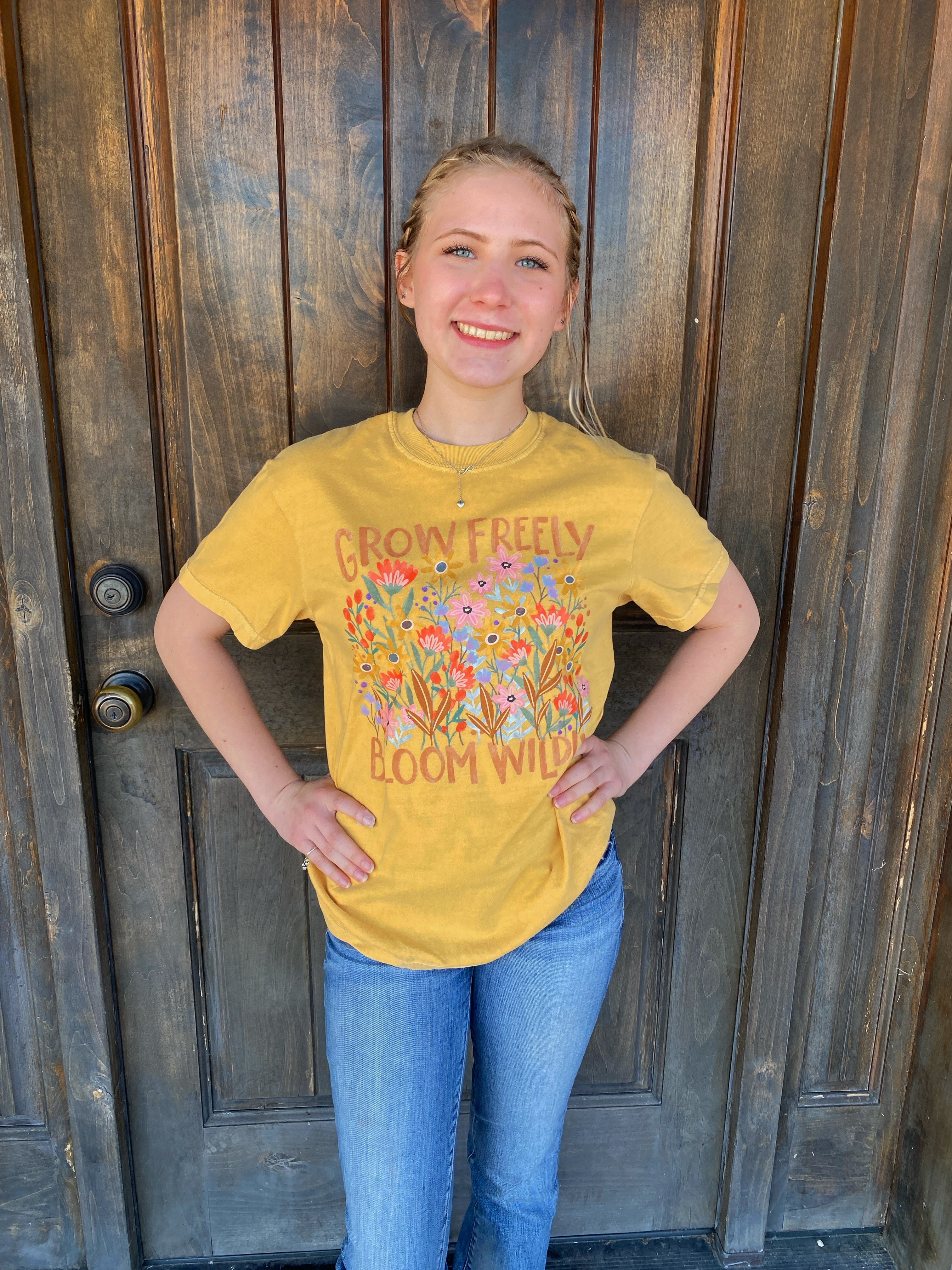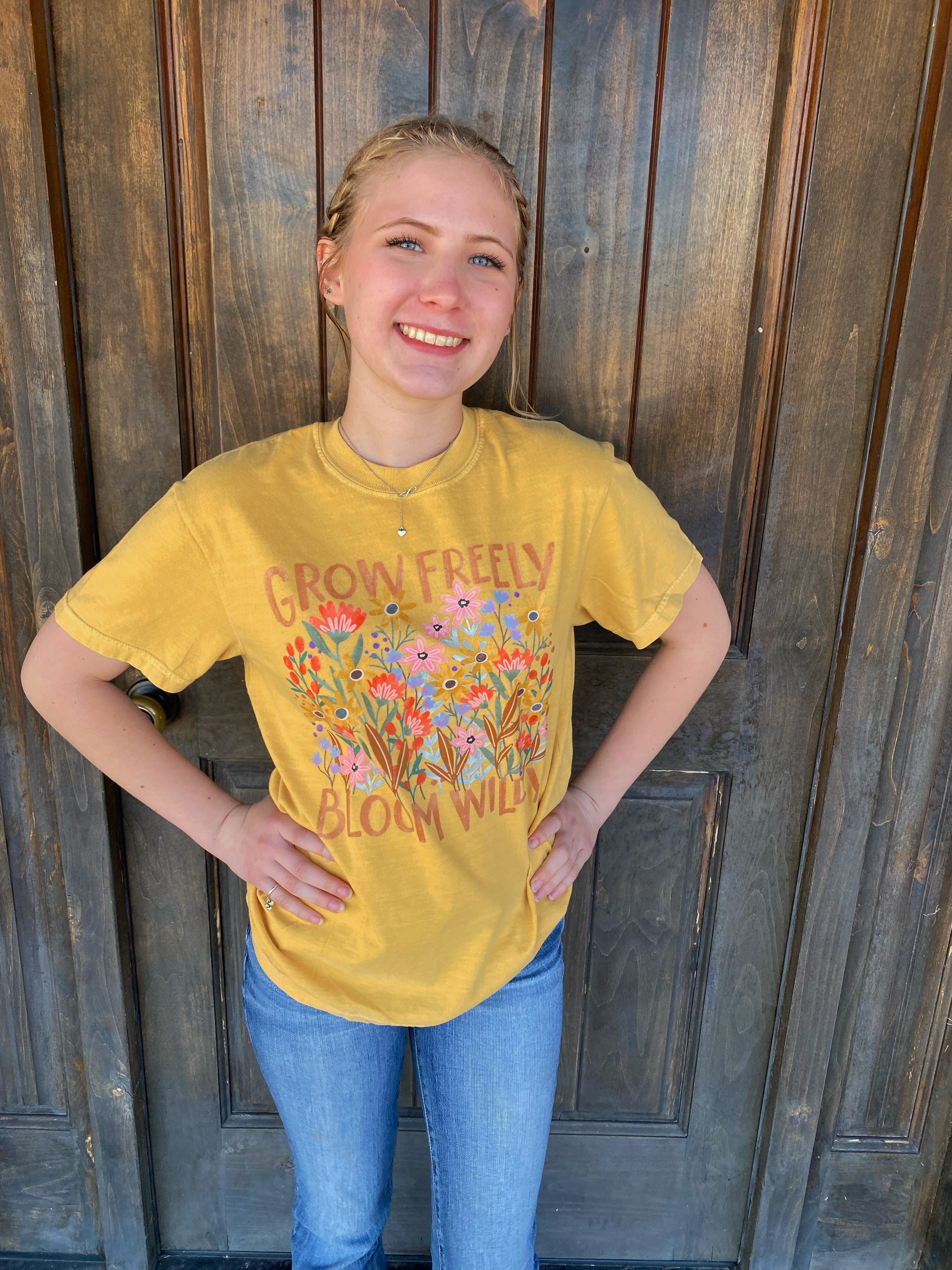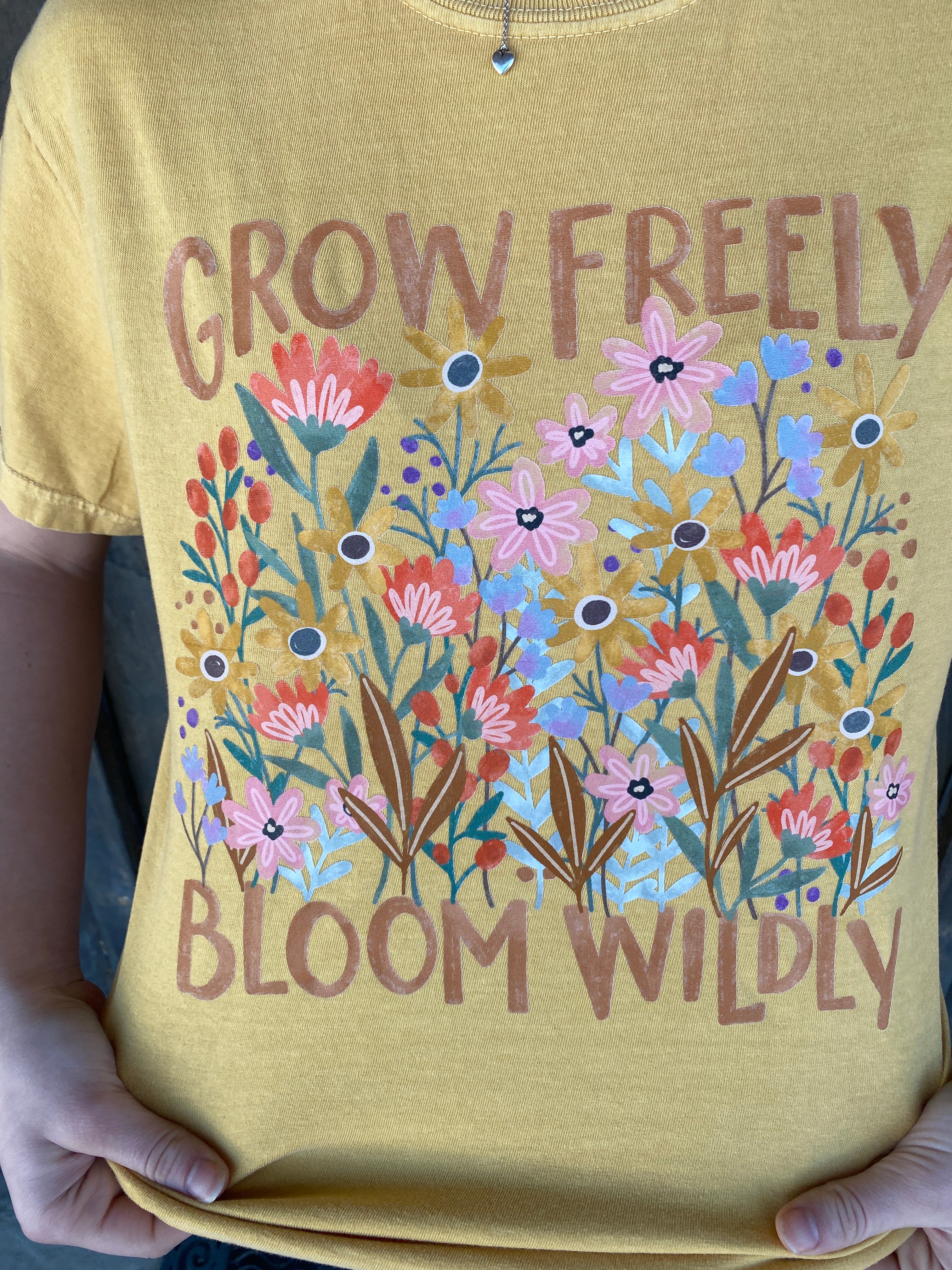 Brighten your day and your wardrobe with this cheerful Grow Freely, Bloom Wildly graphic tee! Printed on a buttery soft Comfort Colors tee in a warm sun-washed yellow, this design features a burst of wildflowers and an empowering message to bloom on your own terms.