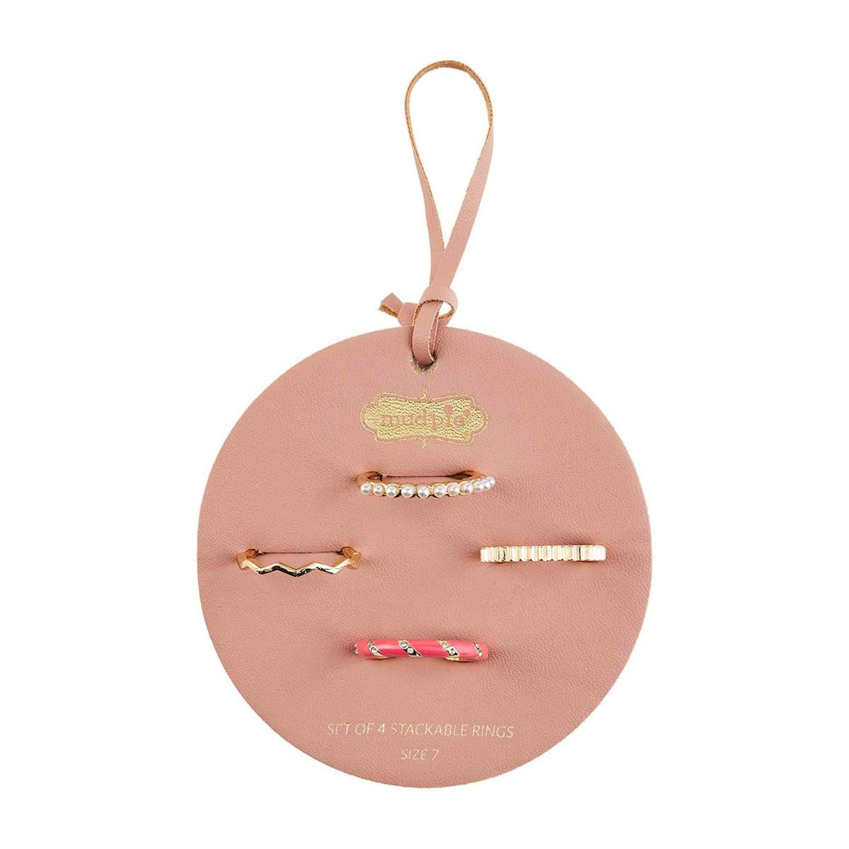 Introducing our Blush Layered Ring Set - a must-have accessory that combines elegance and versatility. This set includes four exquisite stackable rings, carefully crafted to elevate your style. Packaged in a chic faux leather case measuring 3" x 3", these rings are as stunning as they are convenient. Each ring boasts a distinctive design, adding a touch of individuality to your ensemble. Sized at 7, these rings are perfect for effortless mix-matching, allowing you to create endless combinations. Whether for birthdays, anniversaries, or any special occasion, these rings make exceptional gifts that will be cherished forever.