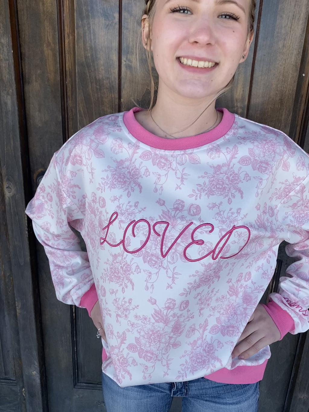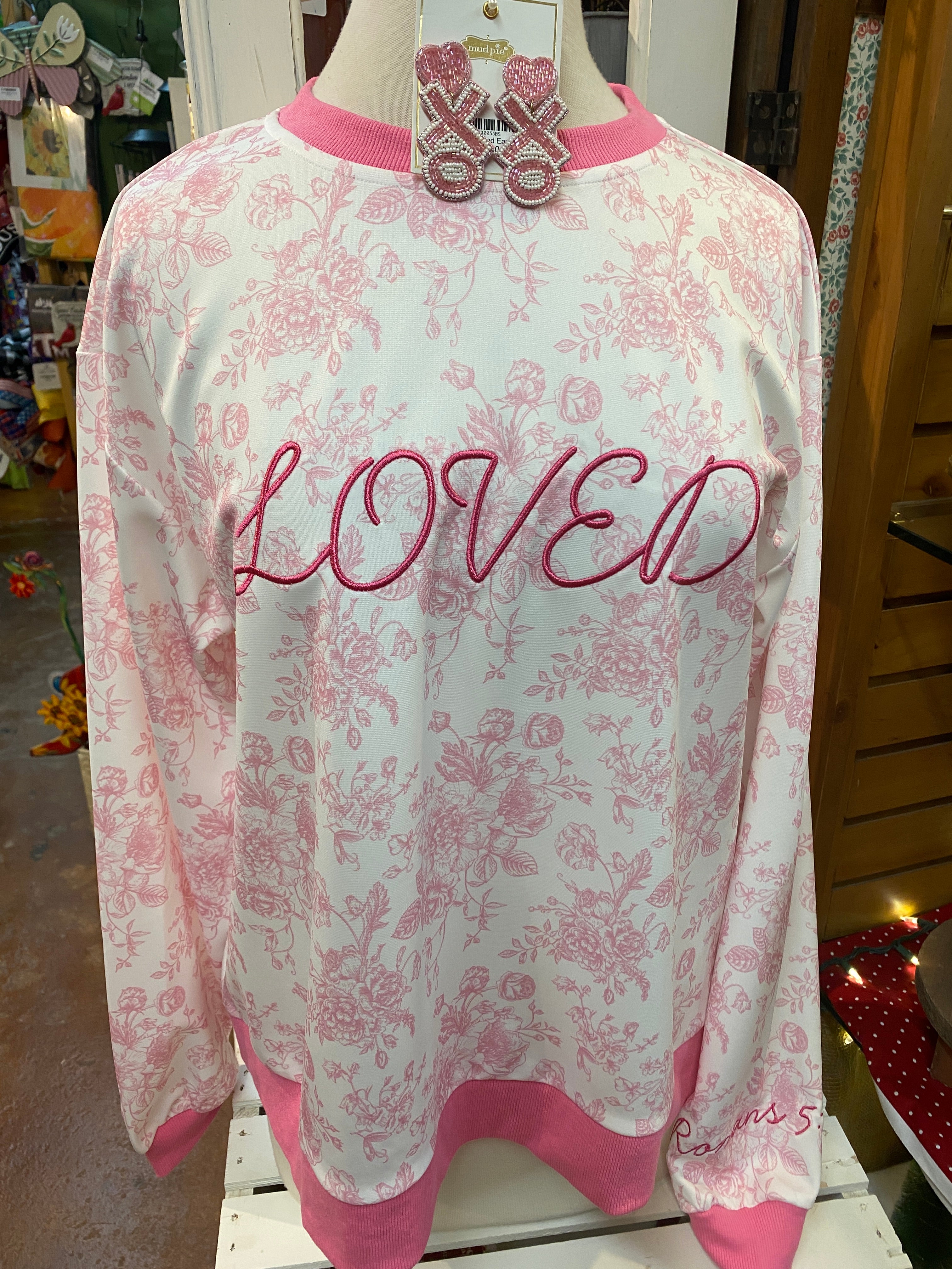 Loved Embroidered Sweatshirt – Soft Pink Floral