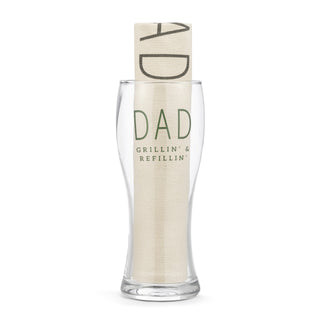 Dad Grillin' Pilsner Glass & Towel Set	Dad Grillin' pilsner glass & towel set – beer glass and towel gift set with grill-themed designs for dads