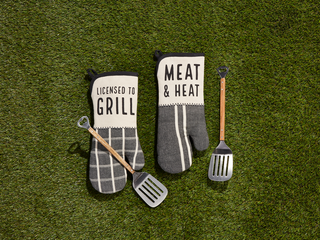 GRILL MITT SET	Grill mitt set – heat-resistant BBQ mitts with fun graphics, ideal for grill masters and weekend warriors