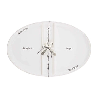 Burger and Hot Dog Platter	Burger and hot dog platter – grill-themed ceramic platter with fun illustrated burger and hot dog graphics