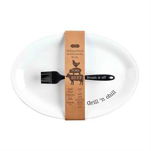 Grill platter brush set – durable serving platter with grill-cleaning brush included for outdoor cooks