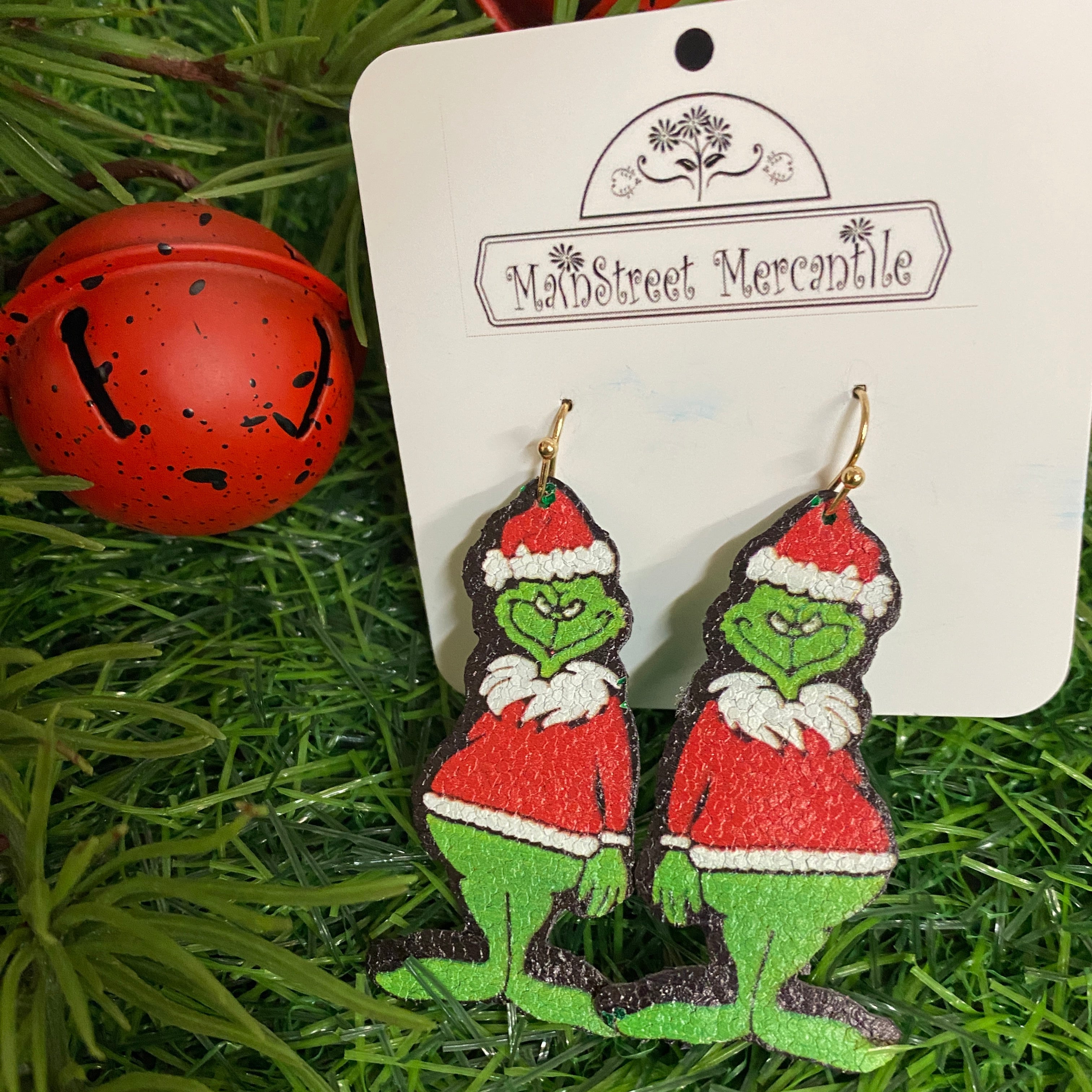 This earring has a light weight "mean green guy" body charm and he's ready for all the holiday festivities.