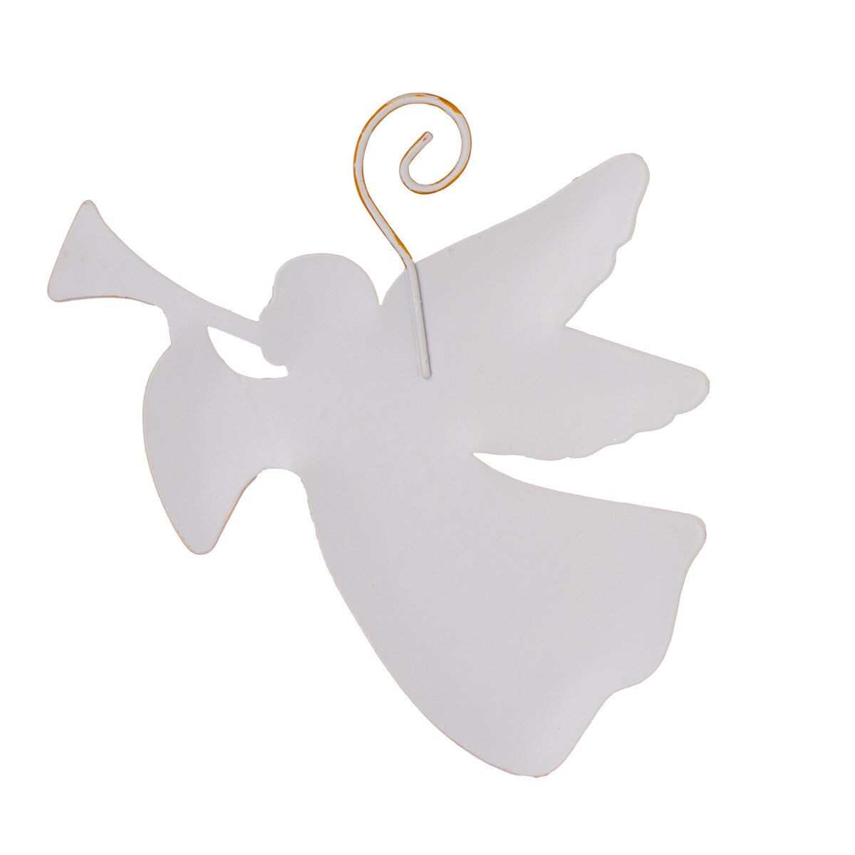 Add a touch of heavenly grace to your Christmas tree with this beautiful metal angel ornament. This piece features an angel in a flowing white gown with delicate golden accents, gracefully blowing a horn to announce the good news of the season. The detailed wings and serene expression capture a sense of peace and joy. A subtle dusting of glitter on the wings adds a gentle sparkle that catches the light beautifully. Lightweight and durable, this ornament is perfect for adding an elegant and spiritual element to your holiday decor.
