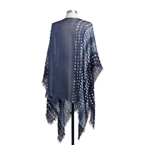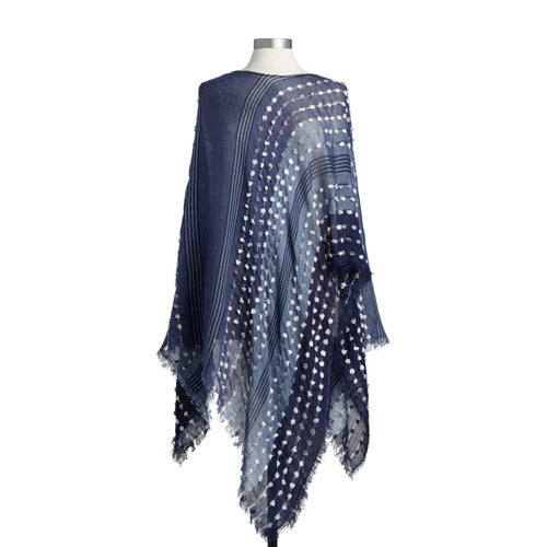 This Textured Poncho in Navy from the Fashion Apparel Spring/Summer Market Finds Collection is the perfect lightweight and stylish piece to add to any trend-forward woman's wardrobe this season. This beautiful lightweight navy poncho features a striking striped design with white and blue textured pom pom accents. A part of the Fashion Apparel Spring/Summer Market Finds Collection, this piece features an on-trend design with luxe lightweight fabrics that are perfect for wearing all year round. A fresh look and beautiful fabrics make this piece a must-have for any modern woman. Ideal for gifting to your mom, sister, grandmother, friend or simply for yourself.