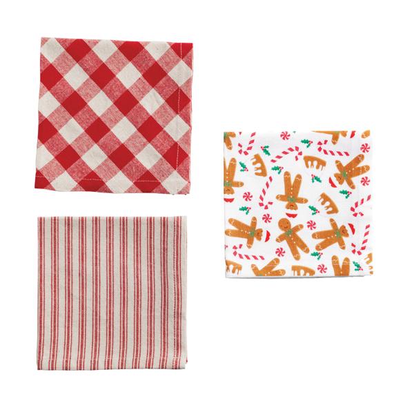 • Three 100% cotton hand towels (12" x 12") adorned with cheerful holiday patterns, offering softness and absorbency for everyday use