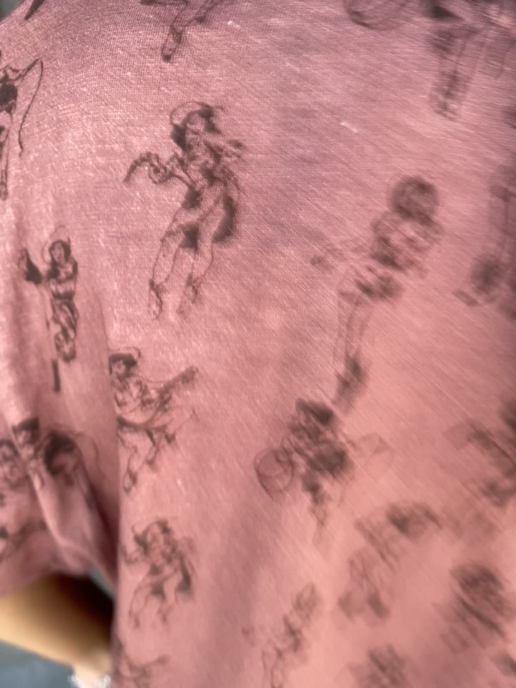 Add a touch of playful retro style to your casual wardrobe with our "Vintage Cowgirl Basic Tee." This unique top features an all-over print of dancing cowgirls, bringing a fun and carefree vibe to your everyday look. The soft, mauve-hued fabric and relaxed fit make it the perfect tee for ultimate comfort. Pair it with your favorite jeans or shorts for an effortlessly cool outfit that’s ready for anything from a weekend outing to a relaxed day at home.